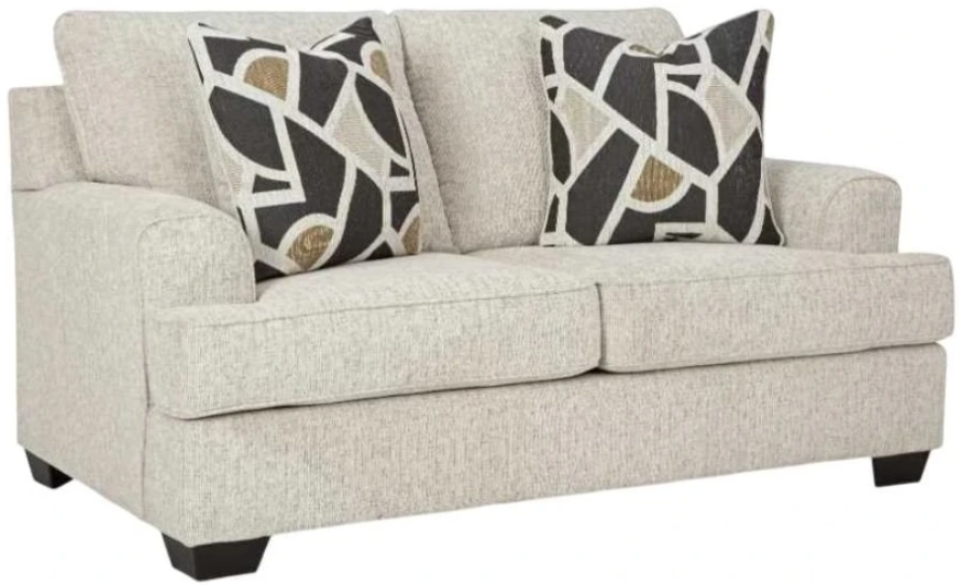 Embrace effortless elegance with this loveseat. Its clean lines and curved details are right at home in contemporary settings. Stressed about styling? The neutral hue easily pairs with your existing color palette. From lounging alone to socializing with guests, it keeps you comfortable in chic style.Read More