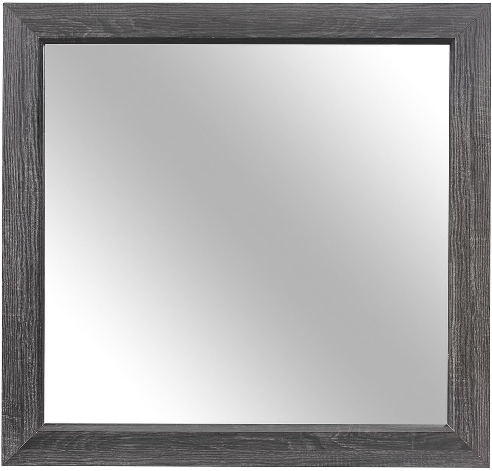 Blending the elements of contemporary design and rustic aesthetic, the Beechnut collection is a unique addition to your bedroom. The gray finish enhancing the embossed faux-wood veneer of the mirror's frame defines the modern-rustic aesthetic.Read More