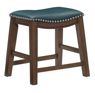 he stool is offered in three heights - 18-inches, 24-inches and 29-inches. The brown finished wood legs and seat apron feature routed accent while the green faux leather seat features nailhead trim that further defines the stool’s profile. 4 additional seat colors are available – brown, red, black and gray – in each stool height.