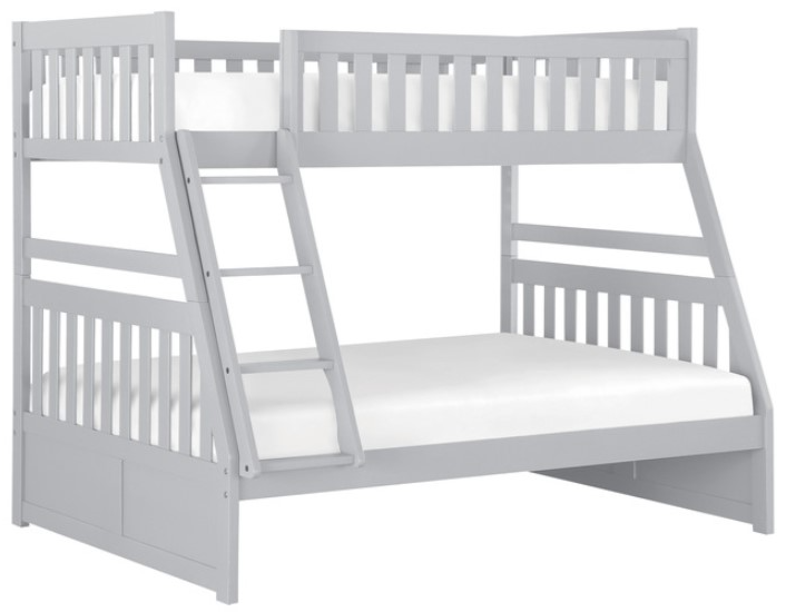Maximizing sleep space is achieved with the stylish Orion Collection. This transitional twin over full bunkbed is featured in a gray finish making it an appropriate choice for a number of youth bedroom settings. Also available: twin over twin, full over full bunkbed, twin over twin trundle bed with two built-in drawers.Read More