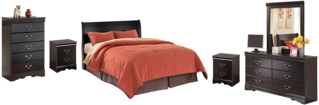 Includes headboard, dresser/mirror, chest and 2 nightstands