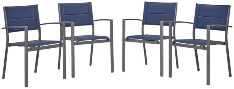 Bring casually cool style outdoors with this sling arm chair. Sturdy aluminum construction and a goes-with-anything gray finish make it the perfect patio or porch companion. A comfortably padded sling seating area in a beautiful blue hue completes the look.Read More