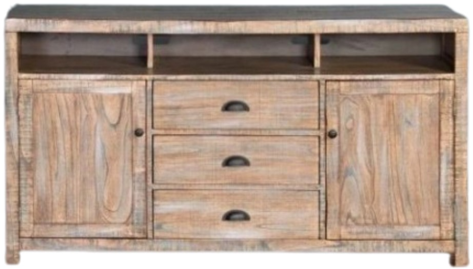 The Sunny Designs Durango 66″ tv console blends rustic appeal and smart functionality. Crafted from mahogany solids and veneers with a weathered brown finish, it includes three dovetailed drawers, two adjustable shelves, a sound-bar opening, and cord management cutouts for a clean, versatile media setup.Read More